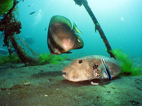 ツバメウオなども寄ってきたりして、その様子を右手を伸ばして撮っていると、、、