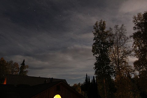 雲がだいぶじゃまですが、一瞬少し動きのあるオーロラを見ました。