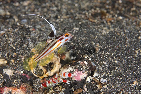 秋の浜の砂地にいた定番のヤシャハゼくんです。