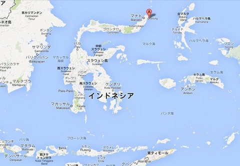 インドネシアのスラウェシ島の北部に隣接する小さな細長い島が