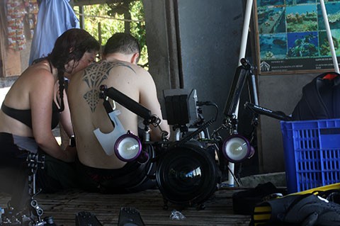 そんな中を巨大な機材を持ち込むダイバーが、、、、
