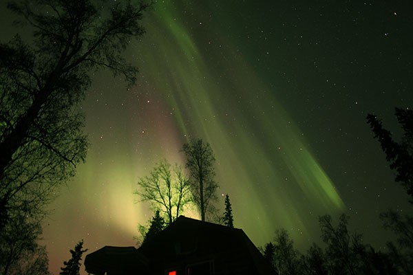 ずっと出続けてたオーロラですが、空から降り注ぐように暴れだしました。