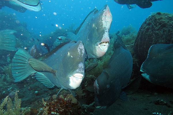 明るくなってくると、一斉にカンムリブダイたちがご出勤です。
