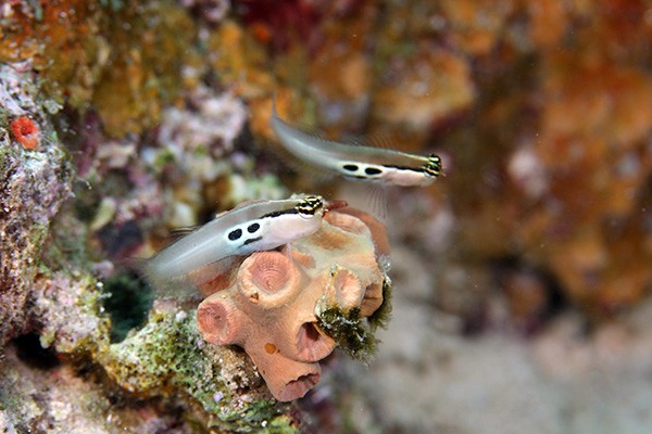 手始めに2匹のツインスポットブレニーが仲良く遊んでいたので