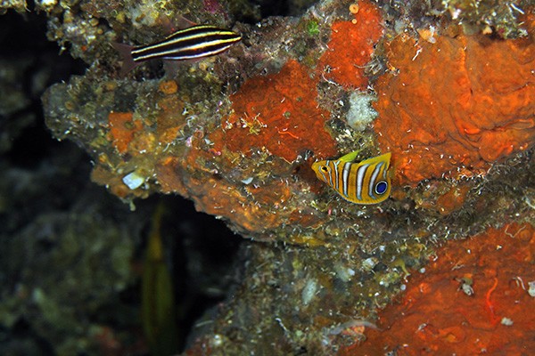 洞窟の奥の天井付近にいたニシキヤッコのygくんです。