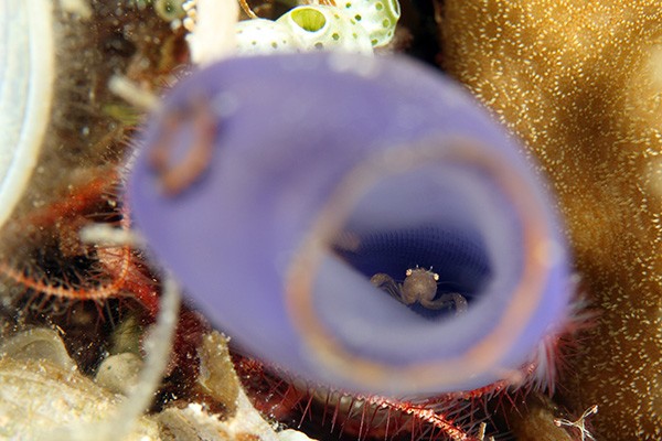 青いホヤの中を覗いてたらいました!