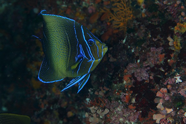 2016.10 八丈島 変身中 2016-10 八丈島 2016.11.13 もうすぐ大人!に変身中のサザナミヤッコくん 幼魚の縞々も可愛いけど、この時期のブルーのラインの子もキレイ! ありゃー、上が切れちゃってすみませーん。 それにしても見事な色合い! なんか得した気分~~