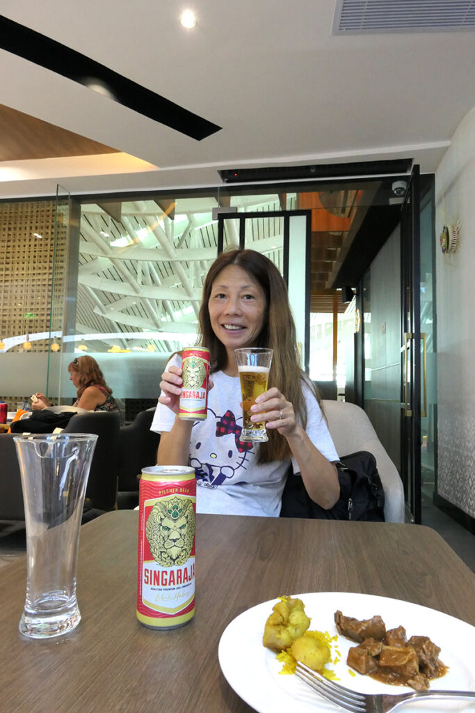 チェックイン開始の1時間前に到着したので、空港内の飲茶屋さんで軽く一杯。