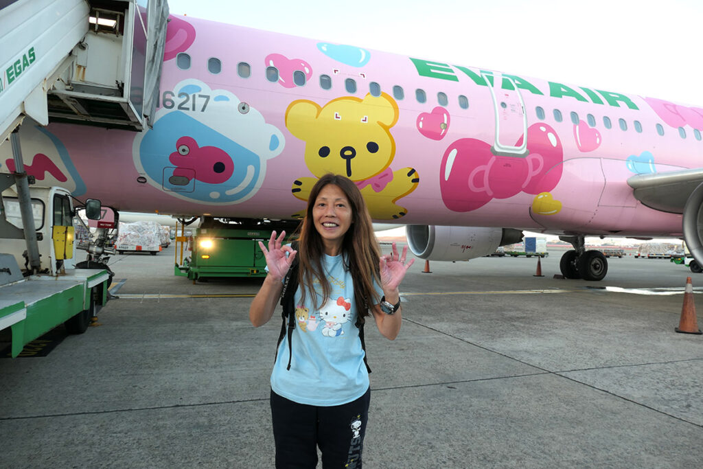 この便では初めてのキティちゃんぐ号!ふみすけはじける。