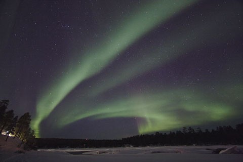 下は2005年3月にホテルの前の川沿いで撮ったオーロラ。