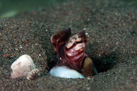 獲物を待ってる風でありますが、夜光性なので顔だけ出して寝てるのでしょう。