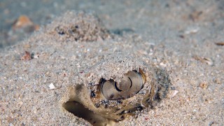 2日目の2本目ラストダイブです。少し砂地のポイント。しつこくブルースポットスティングレーとかを教えてくれるので、仕方なくお目々のアップで~砂地でいかにもフィリピン的なところだったので、ニチリンダテハゼやカニハゼがうじゃうじゃこんな子以外にも...