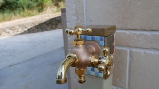 ウッドデッキのメンテと草刈りであっという間に時はすぎました、、、今回何も新しいものがぁーーーー、、、、ということで、帰る間際に少しだけ外の立水栓のデコレーションを蛇口もちょっとおしゃれなのに交換して、味気ない水道管のカバーをタイルで装飾して...